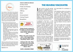 A heavenly encounter is the manifestation of the glory of God designed to bring honour to His Name. It is a heavenly encounter that terminates demonic afflictions, solves problems, and transforms a person’s life in a way that cannot be explained by any known human law. Like parting of the Red Sea, Raising the dead, making water come out of the rock, making an old woman to conceive and deliver at the age of 90, making a virgin to conceive and deliver a healthy baby.